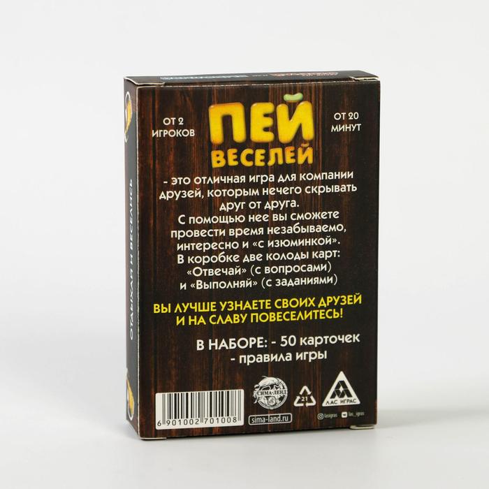 Купить игра для компании "пей веселей" 50 карт от 180 руб. с доставкой до пункта выдачи в Арске. Интернет магазин ДекаМаркет. Оплата при получении.
